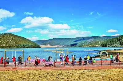 云南省迪庆藏族自治州香格里拉市,地处滇、川、藏大三角交汇地带,是“滇藏茶马古道”要冲。每一个到香格里拉的人,都被自然与历史拥抱,沉醉在雪山、森林构成的“诗和远方”。图为游客在普达措景区参观游览。新华社记者 胡超摄