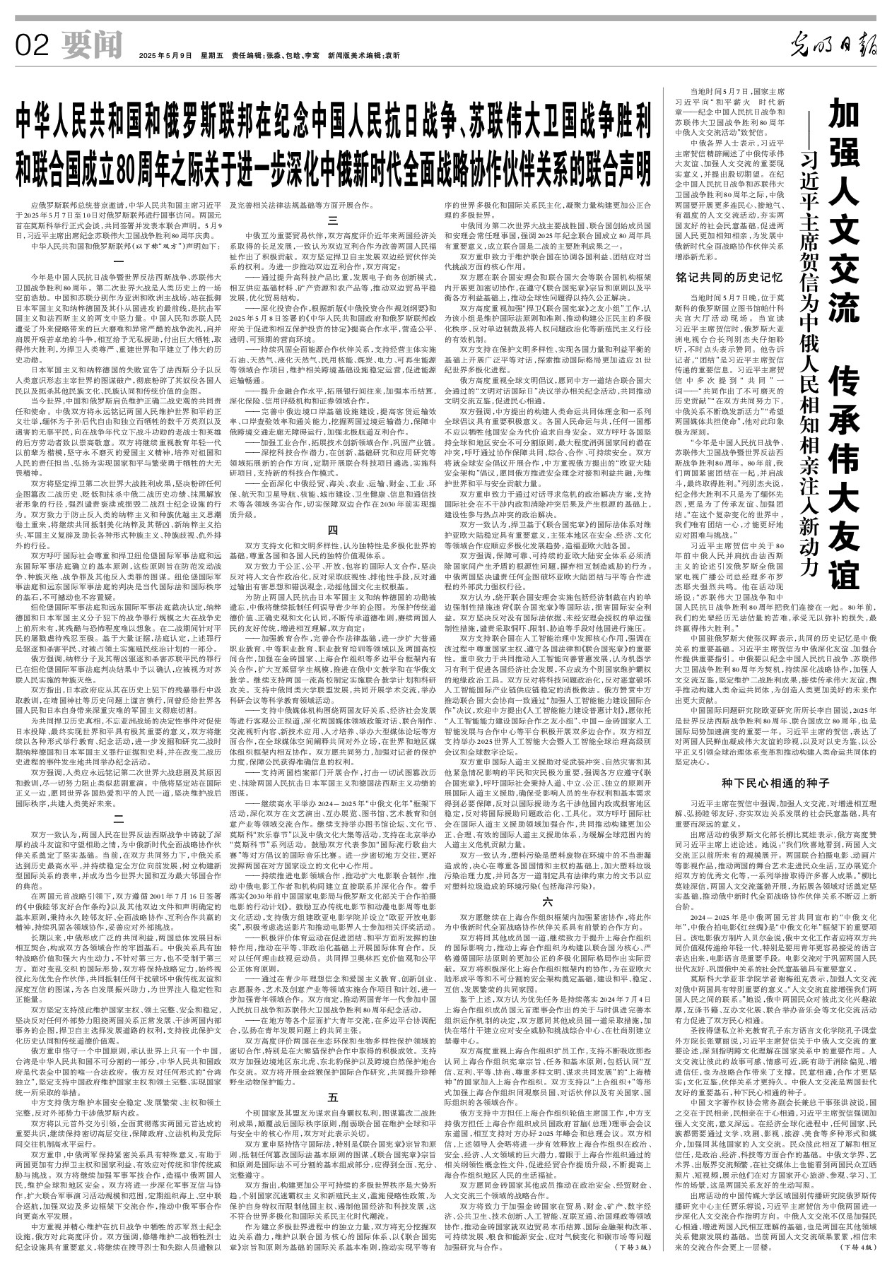 中华人民共和国和俄罗斯联邦在纪念中国人民抗日战争、苏联伟大卫国战争胜利和联合国成立80周年之际关于进一步深化中俄新时代全面战略协作伙伴关系的联合声明