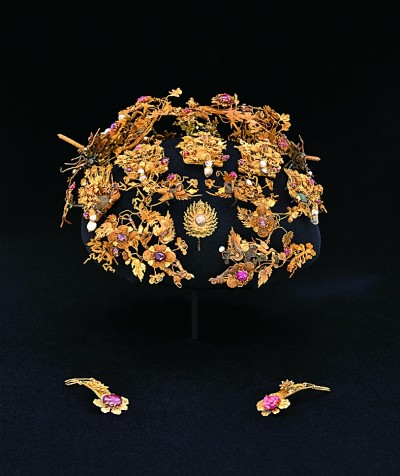 花除了是首饰中时令、美的符号,还是等级的象征。据史料记载,“(皇后)首饰花十二株,小花如大花之数,并两博鬓,冠饰以九龙四凤”,“妃首饰花九株,小花同,并两博鬓,冠饰以九翚、四凤”。后妃及命妇礼服首饰按花钗数区分品级,可见“花”的核心地位。