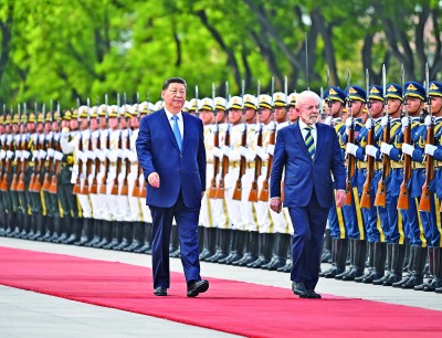 卢拉抵达时,礼兵列队致敬。习近平同卢拉登上检阅台,军乐团奏中巴两国国歌,天安门广场鸣放礼炮21响。卢拉在习近平陪同下检阅中国人民解放军仪仗队,并观看分列式。