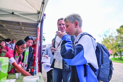 5月11日,在新西兰奥克兰,游客在“茶和天下”·雅集游园活动上品茶。新华社发
