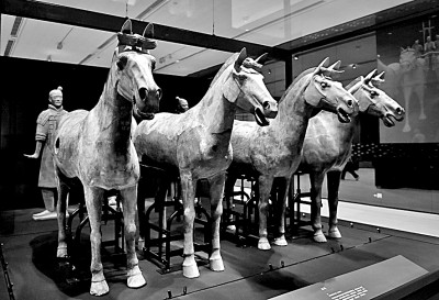 先进的技术使得中国商周战车具有更好的稳定性,更加坚固,作战威力更大。1978年在陕西临潼秦始皇陵陪葬坑中出土了两辆铜车马,其青铜技术堪称巧夺天工,按二分之一比例完整仿制的两辆独辕马车及其驾马(各4匹),在世界上独一无二,精细展现了两千多年前中国古代独辕马车的结构。这两辆车应都是仿制秦始皇生前的乘车,一辆是安车,有轿厢可以躺卧,是平时出行乘用的;一辆是立车,即战车,配备有武器,参加军事活动时乘用。
