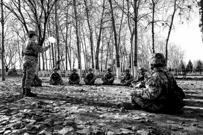 武警第一机动总队某支队基层理论服务宣讲队战地巡讲。李传龙摄/光明图片