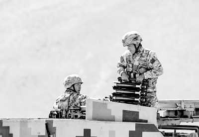 陆军某旅组织车载迫击炮实弹射击考核,官兵装填弹药。 崔获阳摄/光明图片