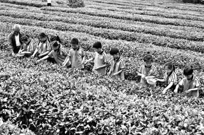 5月22日,山东省日照市岚山区实验小学的同学们,在岚山区安东卫街道特色茶园采茶研学。本报记者 郭俊锋摄/光明图片