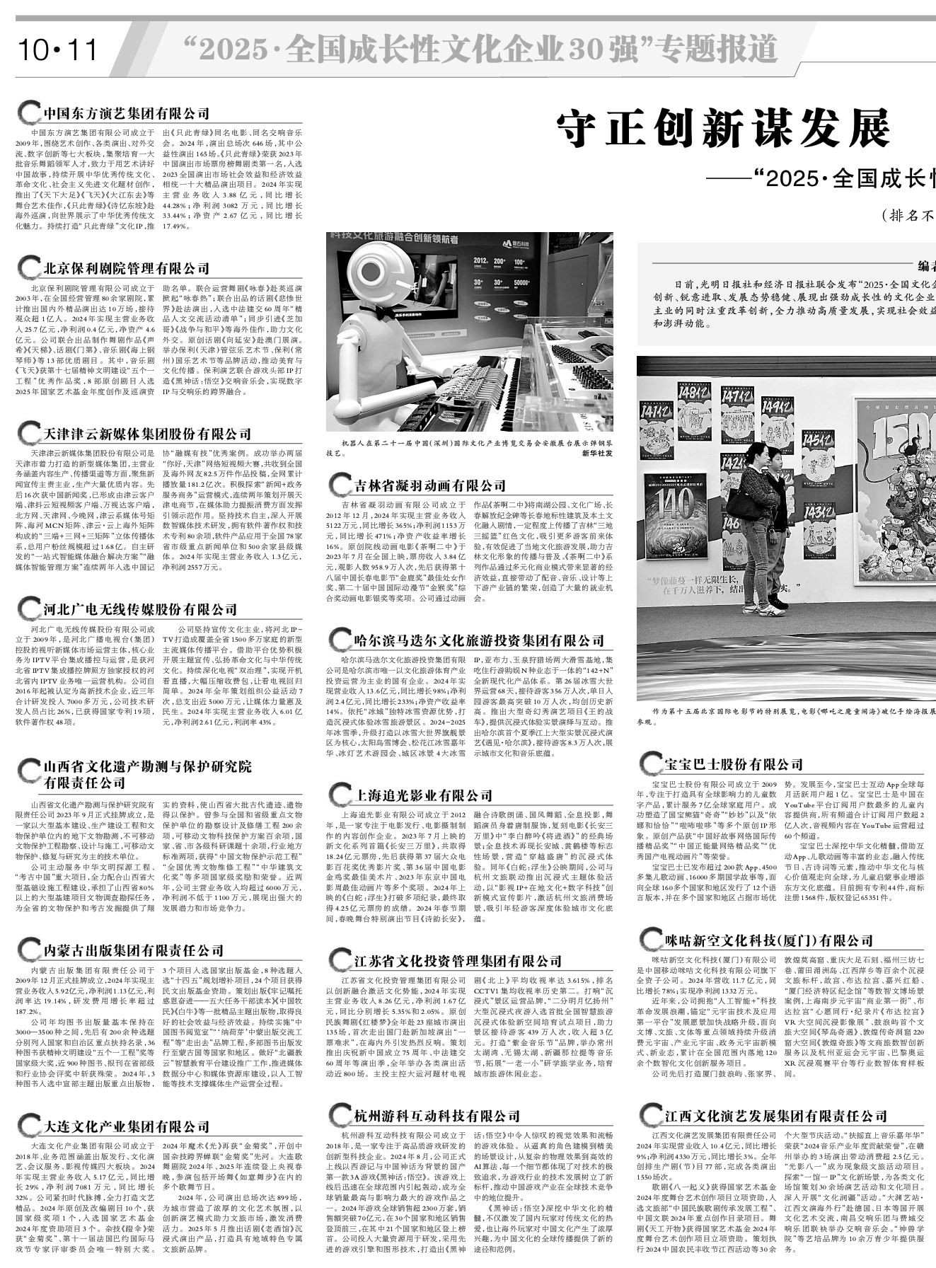 第11版:“2025·全国成长性文化企业30强”专题报道
