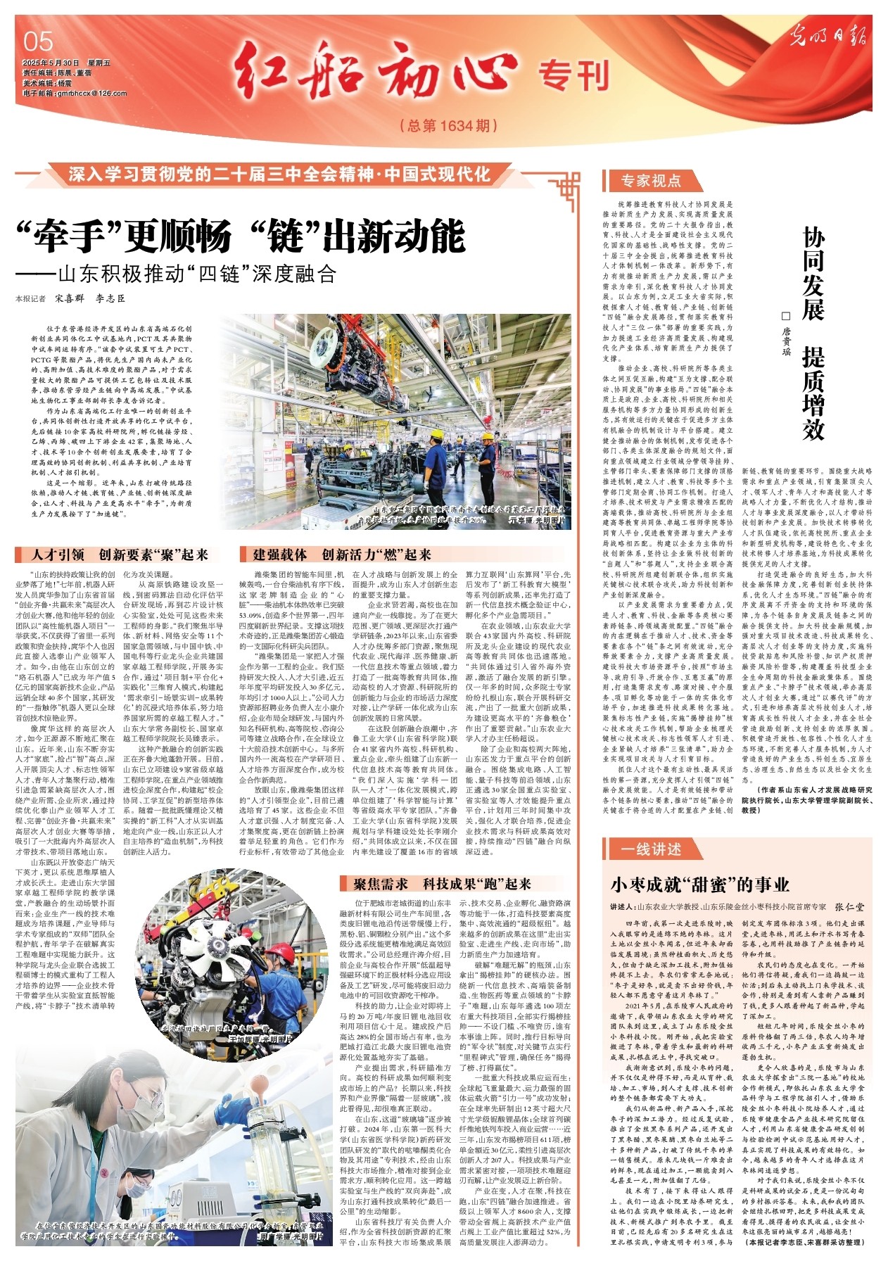 这是一个缩影。近年来,山东打破传统路径依赖,推动人才链、教育链、产业链、创新链深度融合,让人才、科技与产业更高水平“牵手”,为新质生产力发展按下了“加速键”。