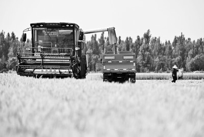 眼下是“三夏”农忙时节。5月底开始,山东南部丘陵山区(枣庄、临沂等)陆续开始收获作业;6月2日前后,鲁西南大面积开机收获;6月5日左右,山东将进入夏粮机收高峰期。图为6月2日,农机手在山东省滕州市南沙河镇河汇村麦田里将小麦装车。李志军摄/光明图片