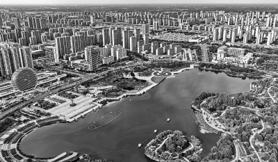 近年来,安徽省亳州市积极践行绿色发展理念,打造出“推窗见绿、出门进园”的水清、岸绿、景美的生态之城,不断增强群众的幸福感、获得感。图为6月4日亳州市高新区市政公园,清澈的湖水与城市建筑构成一幅人与自然和谐的生态画卷。刘勤利摄/光明图片