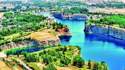 6月4日,山东省菏泽市巨野县核桃园镇白虎山天池风景区,风景宜人。该景区是当地对关停矿山、废弃矿坑进行综合治理和生态修复后打造而成的。新华社记者 郭绪雷摄