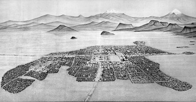 阿兹特克文明兴起于14世纪前期,衰落于1521年西班牙殖民者的征服。在两百余年的历程中,阿兹特克文明成长为古代中南美洲三大文明之一(另外两大文明是印加文明和玛雅文明)。1519年,当西班牙殖民者到达阿兹特克帝国时,发现其首都特诺奇蒂特兰的人口是当时塞维利亚的4倍,赞叹于其宏伟的建筑和精巧的城市设计。“一座令人惊叹的白色城市漂浮在波光粼粼的湖面上,周边被三条长长的堤道所限定”。当时的西班牙士兵贝尔纳尔·迪亚兹记载道,当看到那些建造在水里的城市和村庄,建在陆地上的大城市,以及通往墨西哥笔直而平坦的堤道时,我们都震惊了。