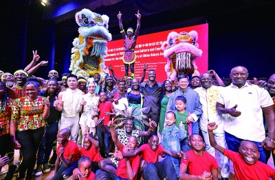 6月6日,2025年中肯文化和旅游季开幕式暨中肯杂技交流40周年专场演出在肯尼亚首都内罗毕举行。两国文艺工作者同台表演,能容纳400人的剧场座无虚席。图为嘉宾和演员庆祝演出成功。新华社发