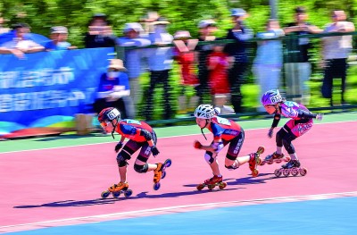 6月8日,2025内蒙古呼和浩特青少年轮滑锦标赛在万和体育公园轮滑场开赛,近200名小选手参加角逐,享受轮滑运动带来的快乐。图为小选手在比赛。丁根厚摄/光明图片