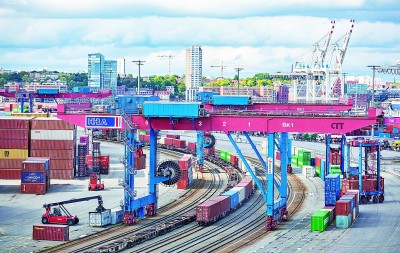 美国关税政策带来的不确定性正日益危及国际贸易,也给德国重要港口带来严峻挑战。英国德鲁里航运咨询公司近期发布的报告显示,3月下旬至5月中旬,德国汉堡港等待时间延长约49%。图为5月28日拍摄的汉堡港CTT集装箱码头景象。新华社记者 张帆摄