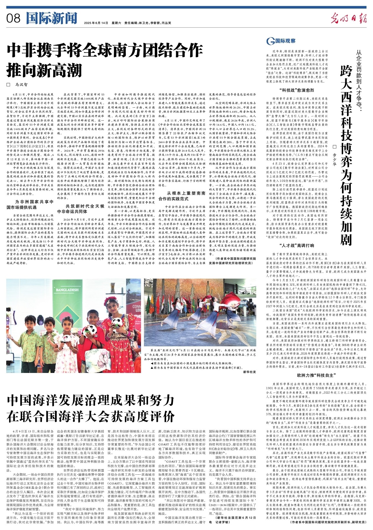 从空间范畴来讲,非洲大陆占世界陆地面积的20.2%,中国占世界陆地面积的6.44%,两者加起来占世界陆地面积的26.64%。从人口规模讲,截至2024年底,非洲人口约14.6亿,中国人口约14.1亿,中非人口占世界总人口的35.2%。从国家数量讲,中国和非洲大陆合计共有55个联合国成员国,占成员国总数的28%。鉴于中非巨大的空间范围、人口规模和国家数量,中非团结合作必将从根本上重塑南南合作的实践范式,使全球南方国家联合自强的愿景获得坚实的物质基础和制度支撑。