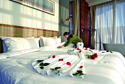江西南昌白鹤小镇成为不少游客旅居目的地,图为白鹤小镇的民宿内,工作人员在打扫房间。新华社发