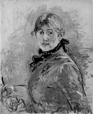 1885年,莫里索画下一幅自画像,画中的她头发斑白却精神焕发,英姿勃勃地手持调色盘,穿透画面直视观众的眼睛里流露着自信,与作品迅捷飞扬的笔触、通透明亮的色彩相得益彰。作此自画像的21年前,少女时代的她以风景画入选官方沙龙展而一鸣惊人。作此自画像的11年前,她以突破自我画风的作品参加印象派首展而留名青史。作此自画像的10年后,莫里索去世。又过了漫长的近百年时间并且经过了多轮画展和艺术品拍卖的验证,“次要的印象派画家”之标签才终于从她身上移除。2013年,油画《午餐后》以1090万美元的价格在伦敦售出,创下莫里索作品最高拍卖纪录。尽管已跻身全球女性艺术家拍品价值的第一梯队,但此价格只是莫奈、雷诺阿等其他印象派画家作品估值的约十分之一。事实上,这位才华横溢的女画家在世时,仅售出过约30幅画作。