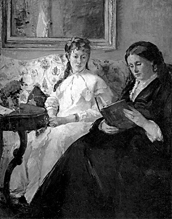 关于莫里索为何出离主流而加入小众的印象派,评论界津津乐道的是她与印象主义奠基人之一爱德华·马奈之间亦师亦友、亦亲情亦知己的关系。二人1868年结识于卢浮宫的临摹活动,莫里索仰慕年长她9岁且已成名的马奈,也很快成为对方钟情的模特。马奈在十余幅作品中描绘了莫里索的形象,其中以《持紫罗兰花束的贝尔特·莫里索》最为著名。二人经常切磋画艺,在马奈的影响下,莫里索的《阅读》《画家的母亲和姐姐》《在阳台上》等作品采用了大色块构图、强明暗对比的创作风格。她也给予马奈许多绘画技法方面的建议,其中最重要的一条,就是走出户外画风景。经马奈引荐,莫里索结识了毕沙罗、德加、莫奈、雷诺阿等一众后世闻名的画家,他们在光色画法革新方面志同道合,虽各有其代表性的艺术语言,但一致摒弃学院派多层罩染的写实画法,一致放弃从宗教神话到历史故事等传统题材,决定自组沙龙共同挑战学院派权威。