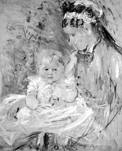 莫里索1841年生于法国中部一个显赫家庭,父亲是高级官员,母亲来自洛可可艺术世家。莫里索和姐姐艾德玛自幼得到吉夏尔等学院派画家指导,萌生了对美术的兴趣。姐妹俩出色的天赋很快令家庭教师惊叹并自认教无可教。1852年莫里索随家人迁居巴黎,自此常到卢浮宫临摹大师作品,系统掌握了古典肖像画、风俗画的技法。在当时的法国社会中,女性一律不得进入高等美术学院接受教育,也不被允许雇佣模特或外出写生。绘画对莫里索姐妹而言,只是淑女教育的一项课程和娱乐消遣的一种雅好。艾德玛在学画过程中原本受到更多称赞,但成年后嫁与军官并搬离巴黎,也就不再作画,而莫里索对美术始终保持着热爱。1861年她师从巴比松画派的卡米耶·柯罗,这成为她从艺的转折点。柯罗所授的对景写生,对莫里索而言是一种新鲜的创作体验,更是一种走近自然、师法自然的艺术理念。几年间她陆续画出了《诺曼底的茅草屋》《瓦兹河岸》《奥弗古路》等出色的风景画,这些作品自1864年起多次入选法兰西美术院主办的全国画展。这一官方美术展自17世纪起就是全国青年画家竞相追逐的成名之路,莫里索受官方沙龙认可的程度,使当时作品屡次遭拒的其他印象派先驱望尘莫及。比在艺坛崭露头角更可贵的是,莫里索在创作这些风景画的过程中,悟到了如何捕捉自然界中随光线变化而瞬间出现的鲜活色彩——日光斑驳、树影婆娑、波光粼粼……她又将这些写生所见的美妙光色运用到对家庭场景的描绘中,画技日益精进。
