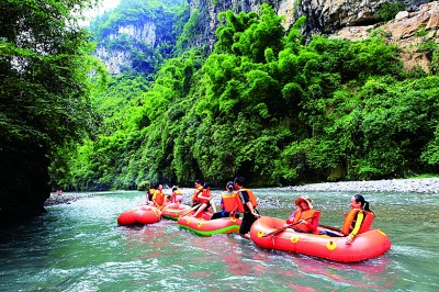游客在黄柏渡漂流。代君君摄