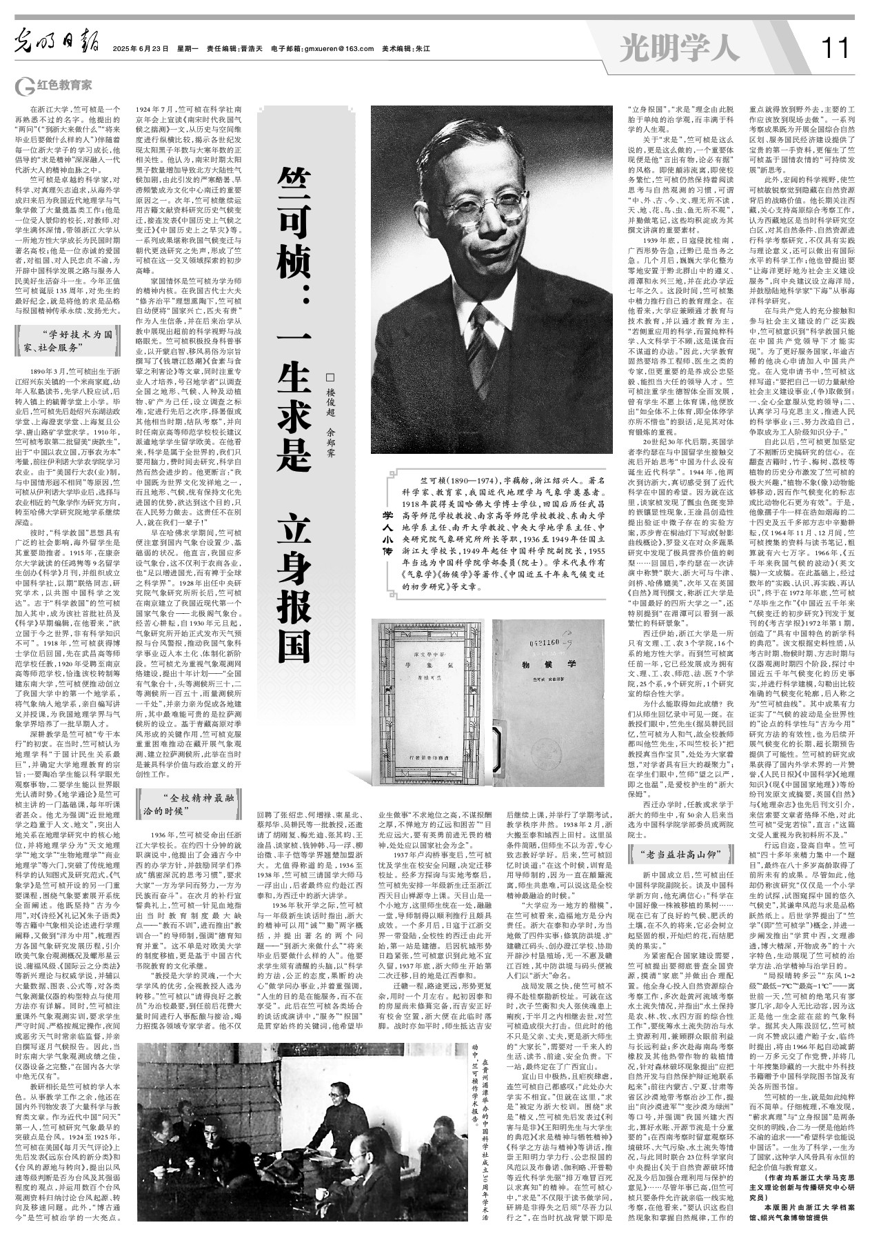 竺可桢是卓越的科学家,对科学、对真理矢志追求,从海外学成归来后为我国近代地理学与气象学做了大量奠基类工作;他是一位受人景仰的校长,对教师、对学生满怀深情,带领浙江大学从一所地方性大学成长为民国时期著名高校;他是一位赤诚的爱国者,对祖国、对人民忠贞不渝,为开辟中国科学发展之路与服务人民美好生活奋斗一生。今年正值竺可桢诞辰135周年,对先生的最好纪念,就是将他的求是品格与报国精神传承永续、发扬光大。