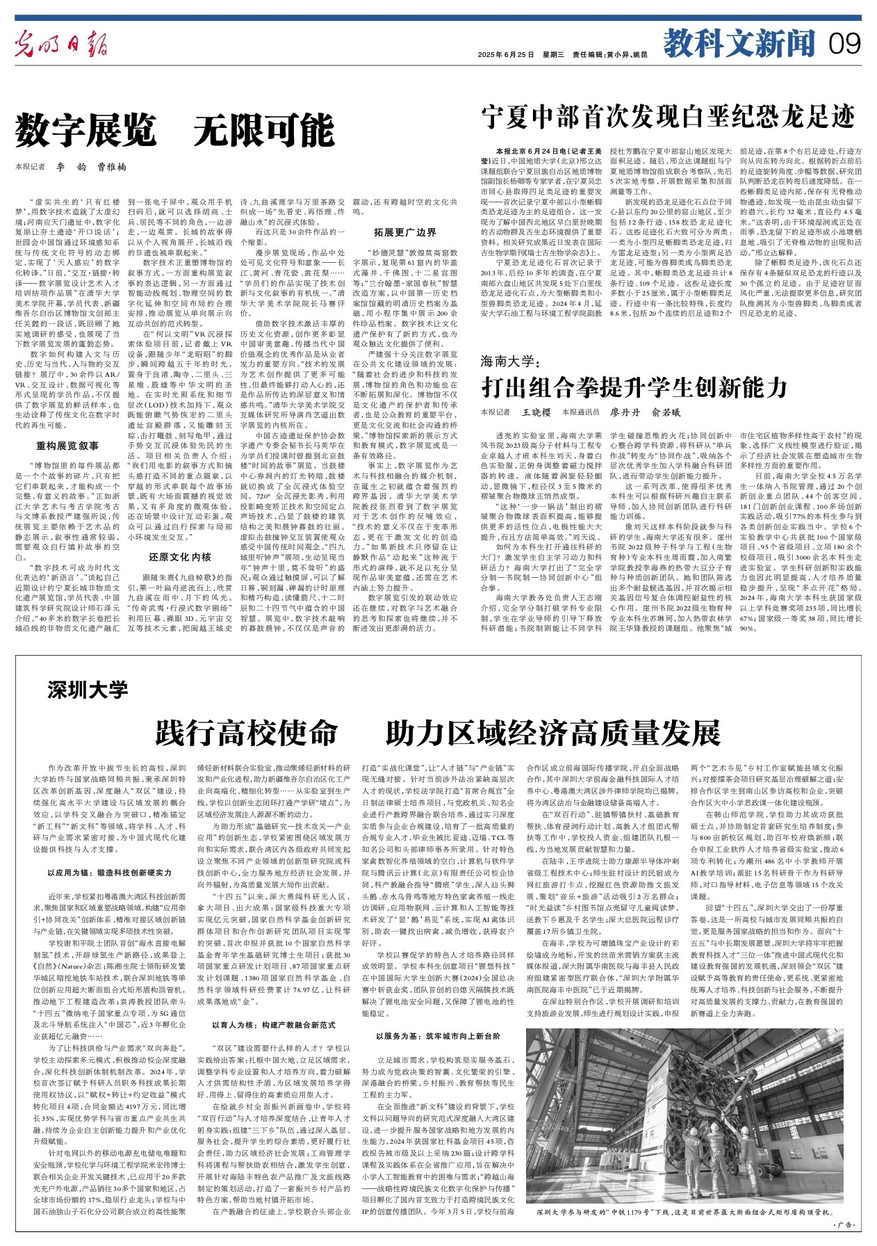 作为改革开放中拔节生长的高校,深圳大学始终与国家战略同频共振,秉承深圳特区改革创新基因,深度融入“双区”建设,持续强化高水平大学建设与区域发展的耦合效应,以学科交叉融合为突破口,精准锚定“新工科”“新文科”等领域,将学科、人才、科研与产业需求紧密对接,为中国式现代化建设提供科技与人才支撑。