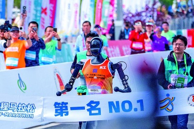全球首个人形机器人半程马拉松在北京亦庄举行。光明图片/视觉中国