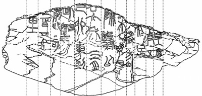 刘钊先生对昆仑石刻有这样的看法:“昆仑石刻铭文的上部是因石材的形状确定的,可以称为‘因形布字’,故行款每行2字到4字不等,这种行款很少见。从照片看,文字似乎也不在一个平面。”他认为“以上两点都符合就地取材,自然随意,不求标准的当时情境”。然而我们在先秦到秦汉的石刻中,从未有这种每行字数如此少而且不一致的石刻。况且此石的位置靠近地面,石的形状如此狭小,何以在这样的位置,这么局促的空间刻一方石刻呢?另外从其行款、字的疏密大小以及用笔的笔势等方面看,这件石刻属于作伪的可能性极大。我这里仅从书法艺术的角度,对“昆仑石刻”提出一点自己的意见。