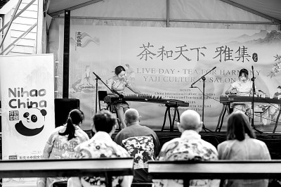 游客在奥克兰“茶和天下”·雅集游园活动上欣赏民乐表演。新华社发