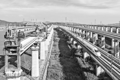 时下,中铁四局巢(湖)马(鞍山)城际铁路架梁施工现场一派繁忙,施工人员奋战在建设一线,确保重点铁路工程建设稳步推进。巢马城际铁路是国家“八纵八横”高铁网沪汉蓉快速通道安徽合肥至上海间的重要组成部分,设计时速350公里。图为7月1日,巢马城际铁路架梁施工现场。新华社发