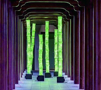 灯光亮起,斑斓的竹影为空间带去丰富的层次感,人们以全新的方式与“竹”相遇,也在此过程中重新审视城市与自然的共生关系。