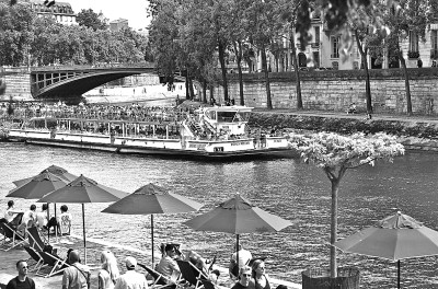 近期,欧洲多国遭受高温炙烤,法国巴黎遭遇严重热浪。不过,巴黎市政府在塞纳河边设立的“巴黎沙滩节”,以及刚刚开放的三处公共游泳区域,都在帮助市民和游客度过炎炎夏日。图为7月5日,人们在塞纳河边消暑休闲。新华社发