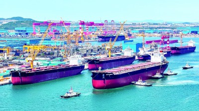 近两年来,恒力集团旗下、新组建的恒力重工集团沿着海洋强国的航线溯游而上。恒力集团董事长、总裁陈建华介绍,集团一期项目“海洋工厂”向着世界一流的绿色船舶建造基地的目标航行,目前已累计开工建造60余艘,新造船订单已排至2029年。今年5月集团成功上市,成为国内“民营造船第一股”。历经5个月,一座由17个超大型车间构成、建筑面积超200万平方米的现代化工厂,于今年拔地而起,二期项目“未来工厂”智能化水平、新技术应用达到世界领先水平。