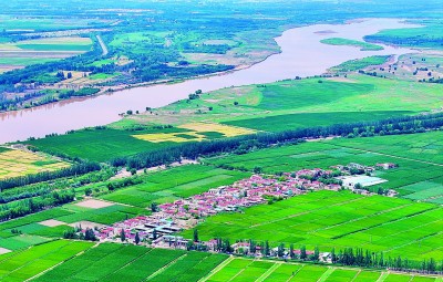 近日,位于宁夏灵武市境内的黄河银川段,蜿蜒的黄河与两岸生态廊道、沃野良田、和美乡村交相辉映,构成一幅夏日生态美景。袁宏彦摄/光明图片