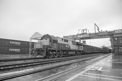 7月9日,12时许,一列满载通讯设备、汽车零配件等货物的中欧班列(成渝)南通道特快班列从重庆团结村中心站缓缓驶出,标志着中欧班列(成渝)南通道特快班列实现常态化开行。新华社记者 唐奕摄