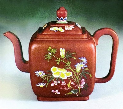 紫砂壶的彩绘装饰兴于清代中期,包含珐琅彩、漆绘、粉彩和清代后期的蓝彩、泥绘等,尽显东西方工艺的融合之貌,给人以斑斓夺目、富贵天成的审美感受。