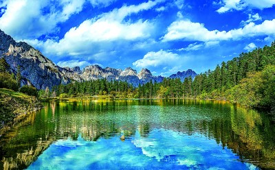 清澈的湖水是这画卷灵动的诗行。尕海湖、骨麻湖、达宗湖等大小不等的湖泊镶嵌在绿色的草原和林海之中。阳光洒落湖面,微风过处,泛起粼粼波光,倒映着蓝天白云和远处雪山的轮廓。水中世界与真实天地交相辉映,界限变得模糊而梦幻。