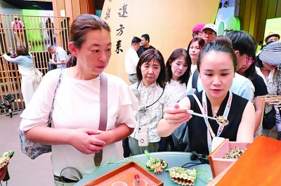 以“诗画浙江”为主题的2025年日本大阪世博会中国馆“浙江周”活动于7月12日正式拉开帷幕。中日两国政府和企业代表等约200人出席开幕式。图为工作人员当日在活动上展示中药香囊制作。新华社发