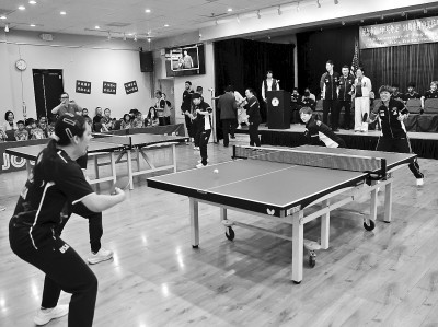 纪念中美“乒乓外交”54周年暨中美乒乓球友好交流活动7月13日在美国内华达州拉斯维加斯举行。正在此间参加世界乒乓球职业大联盟(WTT)美国大满贯赛的多名中国球员走入当地社区,与美国乒乓球队运动员和当地乒乓球爱好者开展友谊交流,共话“乒乓外交”的历史和现实意义。图为活动现场。