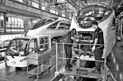 暑运期间,中国铁路上海局集团有限公司南京动车段根据用车需求,提前调整动车组检修计划,实行一日一图,实现动车组错峰检修,全力保障动车组开行安全顺畅,让旅客出行安全、温馨、舒适。图为7月15日,工人在南京动车段南京南动车运用所检修库里检修动车。