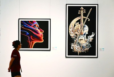 日前,以人工智能视觉创作为核心的“石家庄AI艺术画展”在河北省石家庄市美术馆开展。画展以“科技赋能,艺术共生”为主题,为观众带来全新的艺术体验。展览展期将持续至8月15日。图为7月14日,市民在参观AI艺术画展。