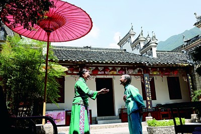 湖北省宜昌市兴山县昭君村王家老宅,村民在为游客演出。