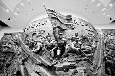 百团大战纪念馆里气势恢宏的浮雕。新华社发