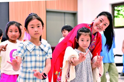 为丰富暑假儿童文化生活,山东省滨州市博兴县利用社区睦邻中心、新时代文明实践中心(站)等场所,招募返乡大学生、文化志愿者,打造“滨滨学堂”,开展形式多样的活动,让孩子们度过一个欢乐、充实的暑假。图为7月23日,博兴县戏剧团的孙娟娟在教孩子们戏剧表演。 新华社记者 郭绪雷摄