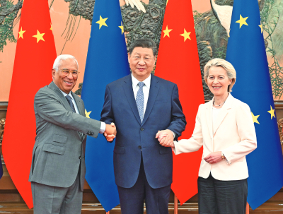三是践行多边主义,维护国际规则秩序。面对战争与和平、竞争与合作、封闭与开放的重大选择,多边主义、团结合作才是正确答案。中欧要共同维护第二次世界大战结束后建立起来的国际规则和国际秩序,与时俱进推动构建更加公正合理的全球治理体系,携手应对气候变化等全球性挑战,让多边主义的火炬照亮人类前行之路。中欧要支持通过政治手段和平解决国际争端。中方一贯从事情本身的是非曲直出发,主张劝和促谈,倡导标本兼治。中方愿同欧方加强协调,推动今年联合国气候变化贝伦大会取得成功,为应对气候变化和全球绿色转型作出更大贡献。中方也愿同欧方开展人工智能领域政策沟通和务实合作,共同推动平等有序的世界多极化、普惠包容的经济全球化。