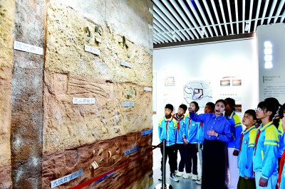 山东省日照市岚山区,学生在尧王城考古遗址公园参观考古成果展。新华社发