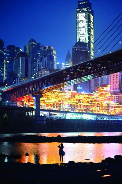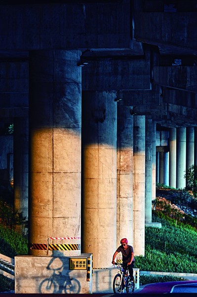 桥下的魅力,远不止于喧嚣。北滨路高架桥下的彩虹骑行道像一条长长的彩带,沿着江岸绵延18公里。夕阳下,骑行者的身影被拉长,巨大的桥墩与之形成鲜明对比。同样的静谧,在千厮门嘉陵江大桥下的江滩公园以另一种方式展现:夏日的傍晚,市民们或躺在草地上,享受江风带来的清凉;或站在江边,观赏对岸的城市灯火。