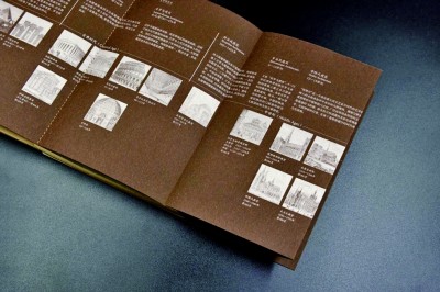 该书的函套设计素朴硬朗,大面积的灰色和几何线条的运用,让人联想到清水混凝土,契合着书籍的建筑主题。穿孔装帧再现了传统的线装技法,书口处手工拉毛的痕迹依稀可见。这本书采用了裸背胶装,优雅复古,且适宜180°平摊开来阅读,在保护书籍的同时提升了阅读体验。