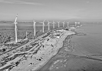 7月27日,山东省荣成市好运角旅游度假区北部沿海的风力发电机组在转动工作,与蓝天、大海、沿海防护林和公路相辉映,蔚为壮观。近年来,荣成市依托沿海丰富的风能资源,规划布局风电建设,推进风力发电、光伏发电等绿色产业发展,优化能源结构,助力乡村振兴,实现生态保护和可持续发展。李信君摄/光明图片