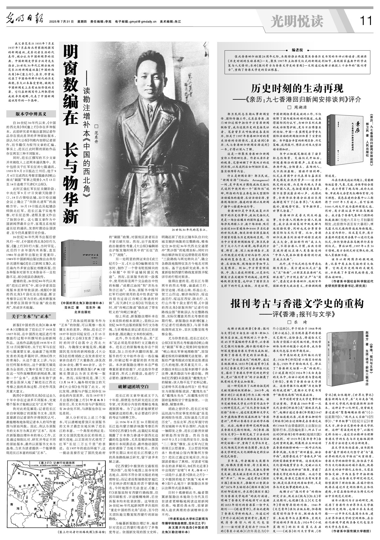 遗憾的是,20世纪80年代以来的“范长江研究”中,部分学者因忽视版本差异导致误读:或据《中国的西北角》片段化长征报道,断言考察非以红军为目的;或未辨版本差异便在顶级学刊妄施“政治批判”,形成学术纰漏。